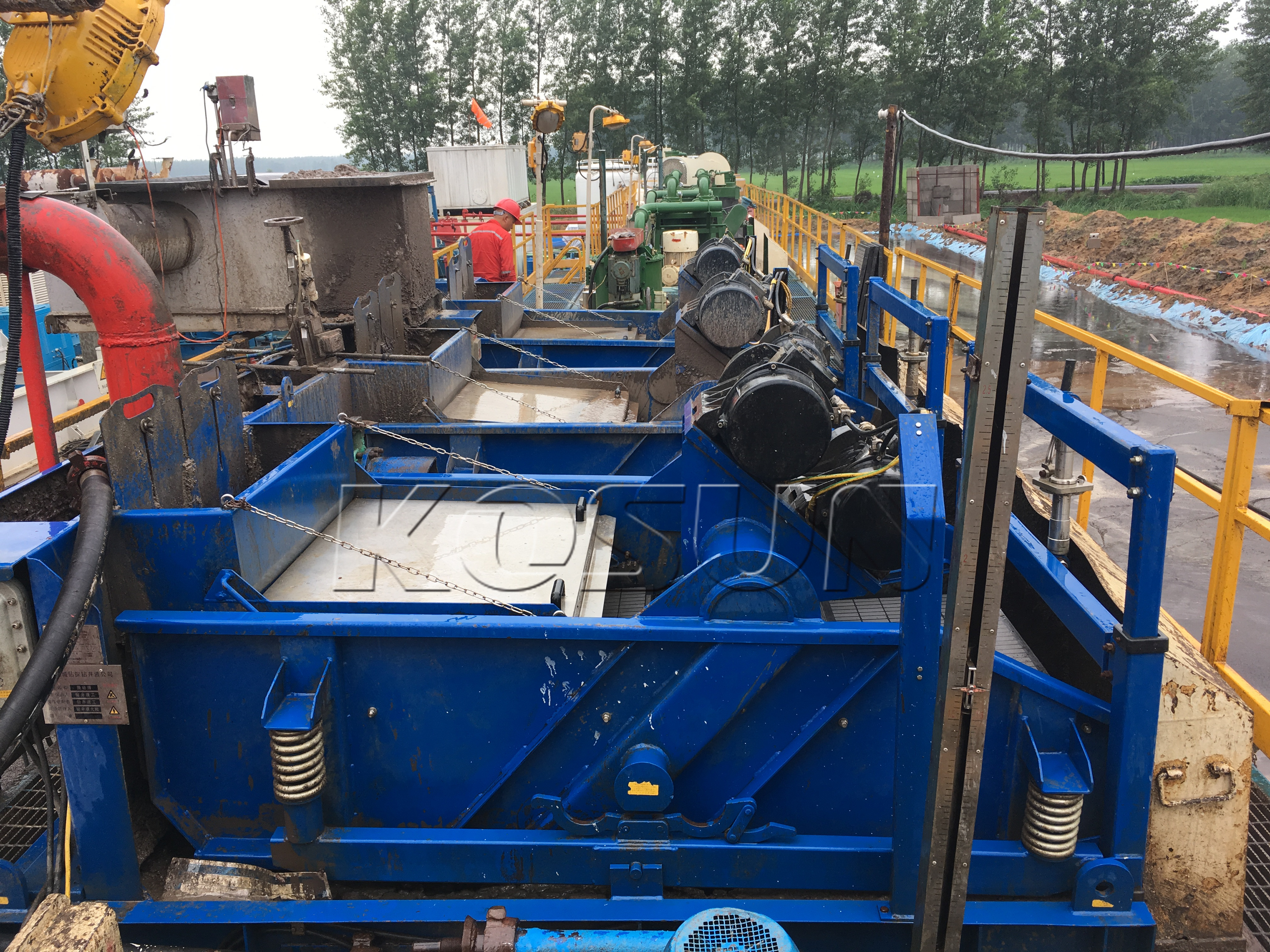 首先,泥漿凈化系統(tǒng)到現(xiàn)場后,用戶根據(jù)現(xiàn)場情況進(jìn)行放置、連接、安裝、配套。由于該設(shè)備只是鉆井液凈化循環(huán)系統(tǒng)的一部分,它的主要責(zé)任是凈化、配制鉆井液,和部 分儲存鉆井液。用戶將該設(shè)備與鉆機(jī)支架出漿口連接好后,必須具備儲漿罐或泥漿池,用來儲存更多的泥漿以便給鉆機(jī)提供足夠鉆井液。