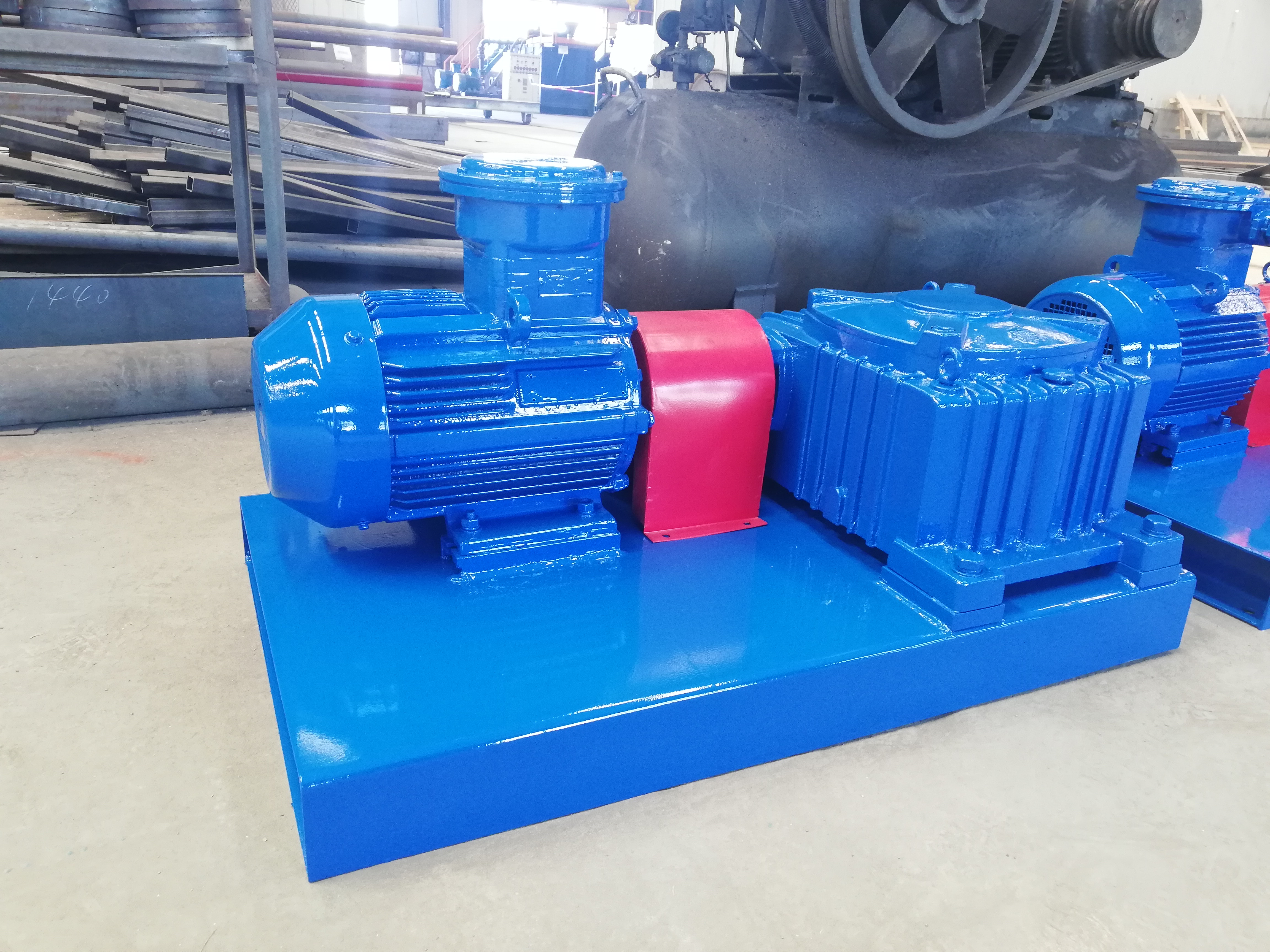 泥漿攪拌器是為了保持鉆井液的均勻性并使固相顆粒懸浮防止沉淀,而對(duì)鉆井液進(jìn)行連續(xù)可靠的鉆井泥漿固控設(shè)備,泥漿攪拌器主要用于鉆井液的攪拌混合,以防鉆井液固相顆粒在其罐式循環(huán)系統(tǒng)中沉積,使循環(huán)鉆井液性能穩(wěn)定,混合均勻。KOSUN機(jī)械泥漿攪拌器采用渦輪蝸桿式減速傳動(dòng),具有傳遞扭矩大、運(yùn)轉(zhuǎn)平穩(wěn)、工作可靠等優(yōu)點(diǎn)。